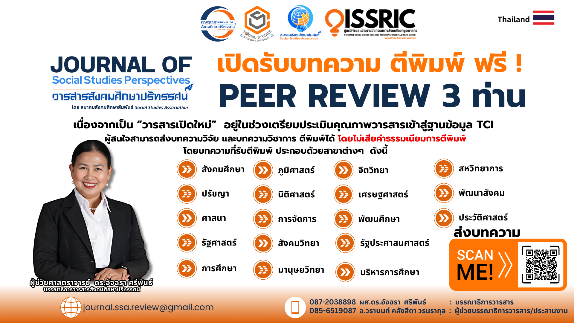 - สนับสนุนการพัฒนามาตรฐานวารสารให้เป็นไปตามหลักสากล เช่น COPE, TCI, ACI และ Crossref Ethics Policy